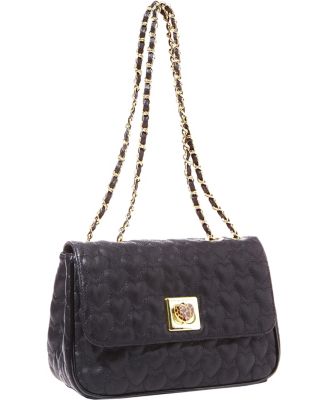 Sweeten your style with this heart-quilted satchel design from Betsey Johnson. Featuring an enamel heart turnlock closure and dual chain link strap, it's the one fashion beat you won't want to miss.