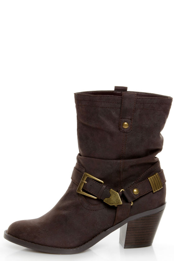 Soda Chi Brown Harness Slouchy Cowgirl Boots
