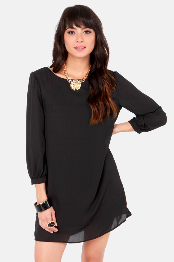 Try as they might, those other shifts just can't compare to the World's Greatest Black Shift Dress. Lightweight woven material forms the perfect shift silhouette with a high rounded neckline and three-quarter length, puffed sleeves with cuffs. Made with Love in the U.S.A.
